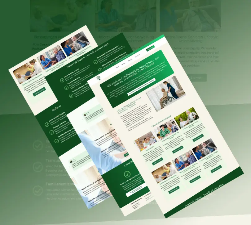 The client wanted a multilingual website for elderly care services in Germany with only a rough concept. I delivered a fully custom WordPress website with two languages, custom visuals, and a clear, trust-focused structure.